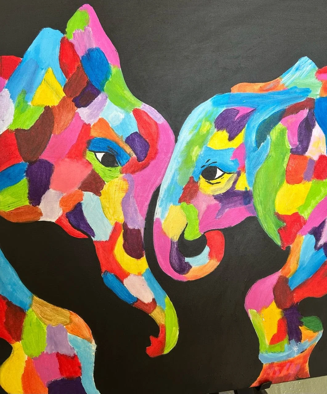 Overseas clients may request a specific painting focusing on unique Rwandan animals or culture and in a size and scale selected by the client.